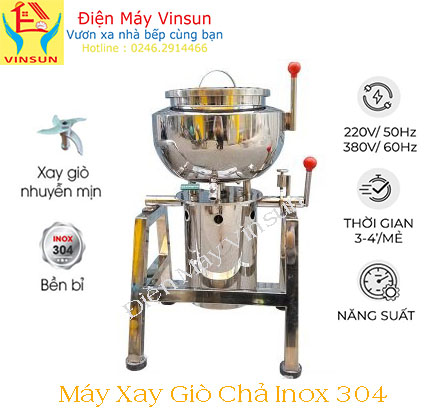 Ngoài ra, Điện máy VinSun( Công ty Ứng dụng công nghệ Việt Nam) Còn sản xuất máy xay giò chả 1.5 kg, 3 kg, 5 kg…… Máy xay giỏ chả công nghiệp điện 380V, Máy xay giỏ chả điện 110V, Nồi tráng bánh cuốn, Tủ hấp giỏ chả, Nồi chiên chả… inox dùng gas và điện.