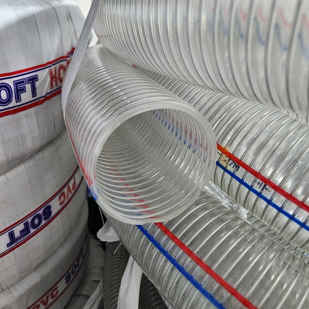 Ống cao su xương thép chịu lực tốt - Lõi thép xoắn liên tục giúp ống giữ nguyên hình dạng khi hút/xả mạnh.